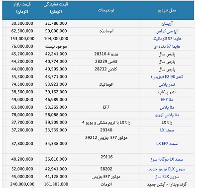 قیمت انواع محصولات ایران خودرودر نمایندگی و بازار اعلام شد.