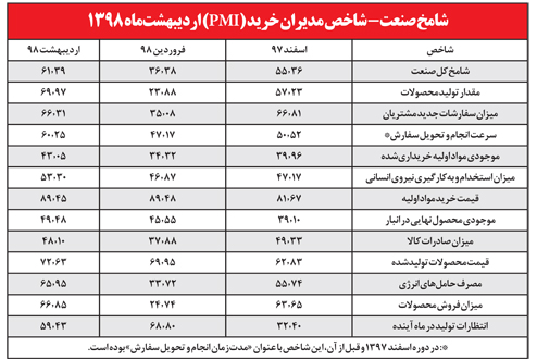 شاخص مدیران خرید (شامخ) در اردیبهشت 98 به 61.39 واحد رسید