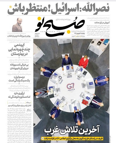 روزنامه دولتی "ایران" با تیتر "گفتگو‌های برجامی در چند قدمی ترامپ" از سفر ظریف به فرانسه استقبال کرد. این روزنامه نوشت: «گذشته از محتوای گفتگو‌های وزرای خارجه ایران و فرانسه در حاشیه اجلاس گروه ۷ این نکته هم قابل توجه است که ظریف در حالی به محل این نشست در فرانسه رفت که همین چند روز پیش امریکا او را در فهرست تحریم‌های خود قرار داده بود. حالا ظریف در چند قدمی دونالد ترامپ است و در کمالبی توجهی قدرت‌های بزرگ و بخصوص فرانسه به تحریم وزیر خارجه ایران، گفتگو‌های تهران- پاریس انجام شد.»