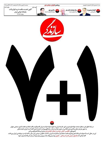 اما روزنامه‌های اصلاح طلب و میانه رو مانور گسترده‌ای روی این سفر دادند. روزنامه سازندگی تیتر بزرگ "۱+۷" را انتخاب کرد. ارگان حزب کارگزاران سازندگی سفر ظریف را «گام تازه در دیپلماسی ایران» دانست و نوشت: «گام تازه‌ای که محصول رایزنی فشرده روحانی- مکرون بود و می‌تواند یک پیروزی برای اروپا در برابر آمریکا محسوب شود.»