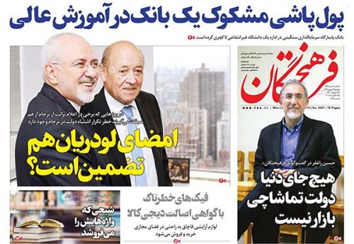 اما روزنامه فرهیختگان وابسته به دانشگاه آزاد که این روز‌ها جزو رسانه‌ها تندرو اصولگرا دسته بندی می‌شود در گزارشی نوشت: "در روز‌هایی که برخی در اعلام برائت از برجام از هم سبقت می‌گیرند خطر تکرار اشتباه دولت در برجام وجود دارد."