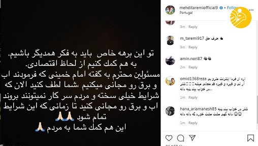 مهدی طارمی بازیکن ایرانی تیم ریوآوه پرتغال از مسئولان درخواست کرد در این شرایط سخت به فکر مردم باشند.