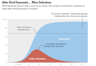 برای مثال اگر این بیماری همه گیر در ایالات متحده کنترل نشود، ممکن است ماهها پس از رسیدن به مصونیت گلهای ادامه یابد و میلیونها نفر دیگر را در این روند آلوده کند. در واقع با پایان یافتن اپیدمی، بخش بزرگی از جمعیت آلوده میشوند که بسیار بالاتر از آستانه ایمنی مورد انتظار گلهای خواهد بود. این ابتلاهای های اضافی همان چیزی است که اپیدمیولوژیستها از آن به عنوان «جهش اضافی» یاد میکنند.
