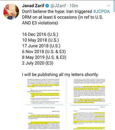 محمد جواد ظریف با انتشار توئیتی درباره سابقه به جریان انداختن مکانیزم حل اختلافات در برجام تاکید کرد که به زودی همه نامه‌هایش را منتشر خواهد کرد.