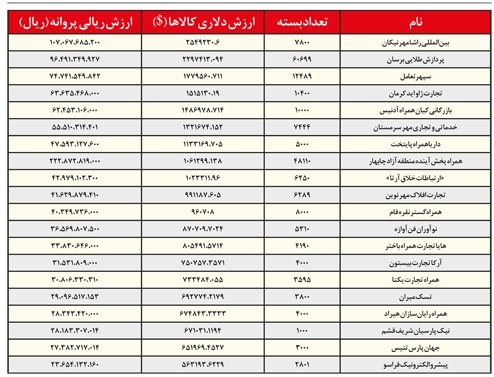 رصد آمارهای دریافتی «تعادل» حکایت از این دارد که این میزان واردات از سوی 132 شرکت انجام شده که میزان و حجم واردات در بین آنها متغیر است؛ بهطوریکه برخی شرکتها تا شش کارتن و برخی تا مرز ۵۰ هزار پالت گوشی موبایل وارد کردند. ارز تامین شده برای این حجم از واردات گوشی موبایل نیز عمدتا درهم و یورو بوده و عمده واردات از «امارات متحد عربی» و بهطور محدود از «چین» و «ترکیه» صورت گرفته است. اما شرکتهای عمده واردات موبایل کدامند؟ وقتی دیتاهای دریافتی را مرور میکنیم، متوجه میشویم، «شرکت بینالمللی راشا مهر نیکان» با واردات 7800 دستگاه تلفن همراه به ارزش 2میلیون 549 هزار دلار در صدر این لیست قرار دارد. «شرکت پردازش طلایی برسان»، «شرکت سپهرتعامل»، «شرکت تجارت ژاو امید کرمان» و «شرکت بازرگانی کیان همراه آدنیس» با تعداد واردات بیشتر اما ارزش دلاری کمتر در رتبه دوم تا پنجم این لیست قرار دارند.