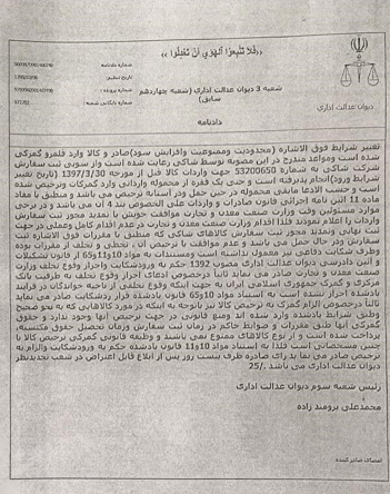 در بخشی از حکم دیوان عدالت اداری آمده است:
