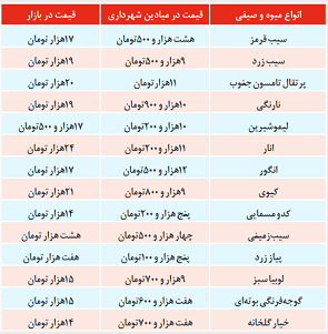 قیمت انواع میوه و صیفیجات امروز شنبه ۲۲ آذر ۹۹