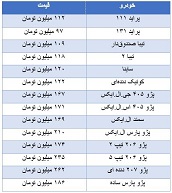 میانگین قیمت خودروهای پرفروش بر اساس آگهیهای منتشر شده در فضای مجازی به شرح جدول زیر است.
