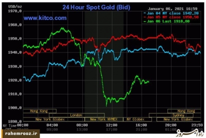 اما بنابه گزارش اقتصاد نیوز و بر اساس گزارش کیتکو درحالیکه نمایندگان مجلس در حال بحث در مورد صدور گواهینامه پیروزی جو بایدن رئیسجمهور منتخب بر دونالد ترامپ ، رئیسجمهور مستقر بودند ، طلا از پایینترین سطح روزانه خود افزایش پیدا کرد. طلا در روزی که گذشت با یک ریزش سنگین به قیمت به ۱۹۰۶ دلار رسید اما در ادامه توانست تا حدی از زیان خود را جبران کند و کمی بالا برود. در پایان روز کاری قبل طلا در سطح 1918 دلار بسته شد که در مقایسه با قیمت بستهشده در روز سهشنبه 30 دلار کمتر بود. درست در همان زمانی که تظاهرکنندگان طرفدار ترامپ با نقض موانع امنیتی وارد سنای آمریکا شدند