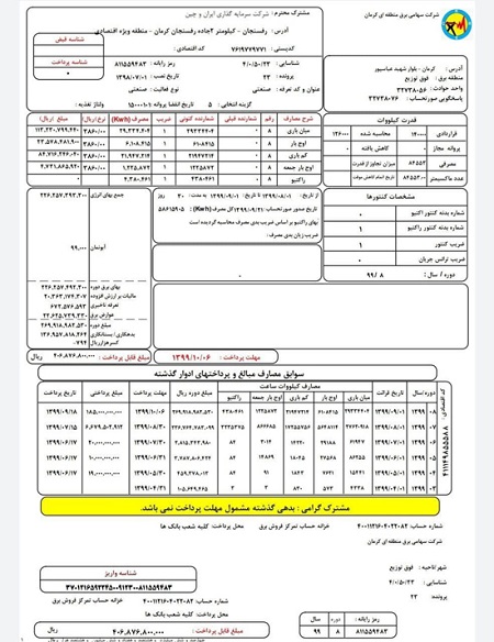 3 ـ آنچه در صورتحساب دوره هشتم سال 99 مشترک شرکت سرمایه گذاری ایران و چین در فضای مجازی منتشر گردیده است، طبق آیین نامه تکمیلی تعرفه های برق و دستورالعمل های اجرایی متعاقب آن محاسبه و اعمال گردیده و طبق روال جاری برای کلیه مشترکین صنعتی چنانچه مشترک تمام یا بخشی از آن را نپردازد ، به عنوان بدهکاری در دوره بعد آورده شده و بر اساس مقررات موجود ، مشمول تعرفه تأخیری می گرددکه در صورت عدم پرداخت ، از طریق روش های قانونی نسبت به وصول مطالبات اقدام می گردد.