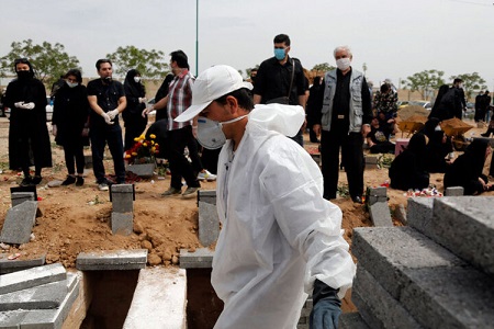 روزنامه ایران در ادامه نوشت: اسامی روی کاورها را در برگه مینویسد و میگوید کدام یکی را داخل ببرند. نگاهم به اسامی روی کاورها میافتد؛ محمد صادق ۶۲ ساله، علیرضا ۴۱ ساله، محسن ۷۵ ساله، هاشم ۳۱ ساله، اشکان ۲۹ ساله و.... مسئول بخش تطهیر ماسک را روی صورتش جابهجا میکند و میگوید: «تا با چشم خودمان نبینیم باور نمیکنیم کرونا به کسی رحم نمیکند. سن و سالشان را ببین! از جوان ۱۸ ساله تا پیرمرد ۸۰ ساله. دیروز خیلی شلوغتر بود. سه بعد ازظهر همه از خستگی بریده بودیم.» دوباره اسامی دفتر را بالا و پایین میکند. در میان اسامی فامیلیهای مشترک هم دیده میشود: «۲۰ روز قبل پدر یک خانواده را که قربانی کرونا شده بود غسل دادیم و امروز جنازه مادر خانواده را آوردهاند. سنگ هم باشی از شیون و گریه بچههایشان آب میشوی. خودشان را سرزنش میکردند چرا بیشتر مراقبشان نبودند.»