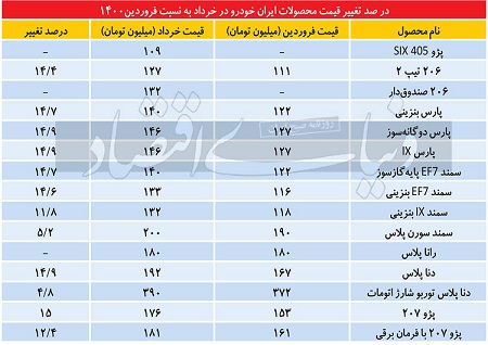 در این زمینه یک دست‌اندرکار صنعت خودرو به «دنیای‌اقتصاد» گفت که برخی از محصولات شرکت ایران‌خودرو همچون پژو پارس تا سقف ۱۵ درصد افزایش قیمت پیدا کرده‌اند حال آنکه برخی خودرو‌ها به صلاحدید این شرکت، افزایشی ۵ تا ۶ درصدی را به خود دیده‌اند. در این زمینه رانا پلاس افزایش قیمتی نخواهد داشت حال آنکه ۵ درصد به قیمت دنا پلاس توربو شارژ افزوده خواهد شد. به این ترتیب به‌نظر می‌رسد که شورای رقابت با در نظر گرفتن متوسط رشد قیمت ۹ درصدی، این اختیار را به خودروسازان داده که با توجه به حاشیه بازار نسبت به قیمت‌گذاری محصولات خودرویی خود اقدام کنند. به‌طوری که محصولاتی که قیمت حاشیه بازار آن‌ها در مقایسه با قیمت کارخانه بیشتر است و دلالان سود بیشتری از آن می‌برند، افزایش قیمت بیشتر از قیمت متوسط (۱۵ درصد) خواهند داشت.