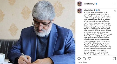 علی مطهری نایب رییس سابق مجلس با انتشار یادداشتی در اینستاگرام از عبدالناصر همتی در انتخابات ریاست جمهوری حمایت کرد.