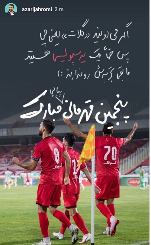 کری خوانی محمد جواد آذری جهرمی، وزیر ارتباطات دولت روحانی، با استقلالی‌ها ادامه دارد؛ او که پیش از این از پرسپولیسی بودنش پرده برداشته و همواره در صف اول کری خوانی با هواداران استقلال قرار داشته، شب گذشته بعد از قهرمانی پرسپولیس با انتشار استوری‌ای تازه، کنایه‌ای جدید به استقلالی‌ها زد.