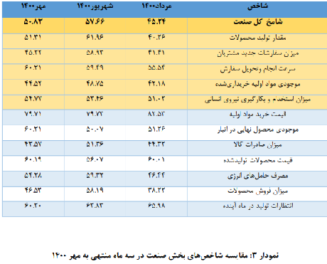 بر اساس دادههای به دست آمده از بنگاههای بخش صنعت، شاخص مدیران صنعت در مهرماه عدد 83/ 50 بوده که در نتیجه نظرسنجی از مدیران خرید بنگاهها به دست آمده است. در بین زیرشاخصهای اصلی شامخ صنعت، شاخص میزان سفارشهای جدید مشتریان و شاخص موجودی مواد اولیه زیر عدد50 را به ثبت رساندهاند و باقی شاخصها در جایی بالاتر از مرز 50 قرار گرفتهاند. شاخص مقدار تولید محصولات در مهرماه به عدد 31/ 51 رسیده که نسبت به شهریور با کاهش همراه بوده است. کاهش سفارشهای جدید و موجودی مواد اولیه، هر دو در کاهش شاخص تاثیرگذار بودهاند.