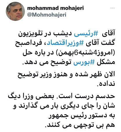 انتقاد مهاجری به رئیسی: وزیر اقتصاد نیامد!