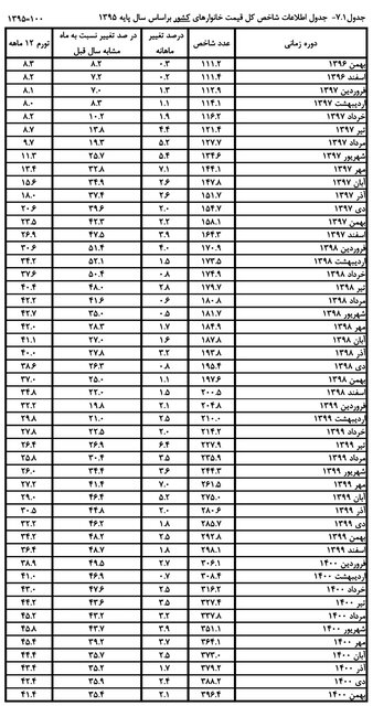 اعلام تورم بهمن ماه توسط مرکز آمار ایران نشان داد که تمامی شاخص ها کاهشی شده است؛ به طوری که تورم ماهانه ۲.۱ ، نقطه به نقطه ۳۵.۴ و سالانه ۴۱.۴ درصد ثبت شده است.