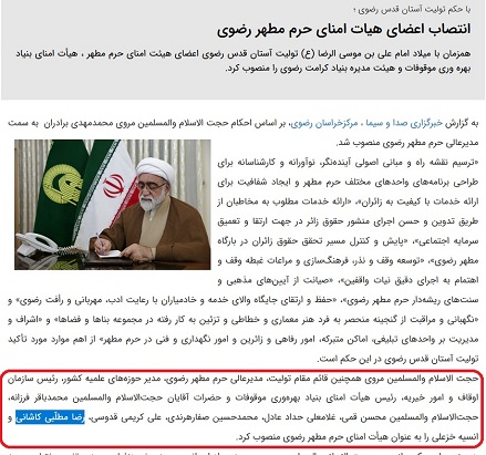 از جمله احمد توکلی عضو مجمع تشخیص مصلحت نظام بعد از ماجرای غسل آیت الله مصباح یزدی درباره او نوشته بود: افرادی که در لباس تاجران خیّر و متدیّن به دنبال نفوذ بر علما و مسئولان هستند فارغ از آنکه، کار خیری که از عایدی غصب املاک دیگران یا اجاره موقوفات به ثمن بخس صورت گیرد را چه سود، حتی اگر نگهداری از صدها کودک معلول یا ساخت حوزه های علمیه باشد و بدتر آنکه پای چنین افرادی را به تمشیت امور در آستان مقدس علی بن موسی الرضا (ع) نیز باز نماید.