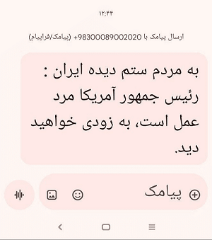 امروز 4 اسفندماه از یک سرشماره ناشناس برای شماری از شهروندان ارسال شده است.